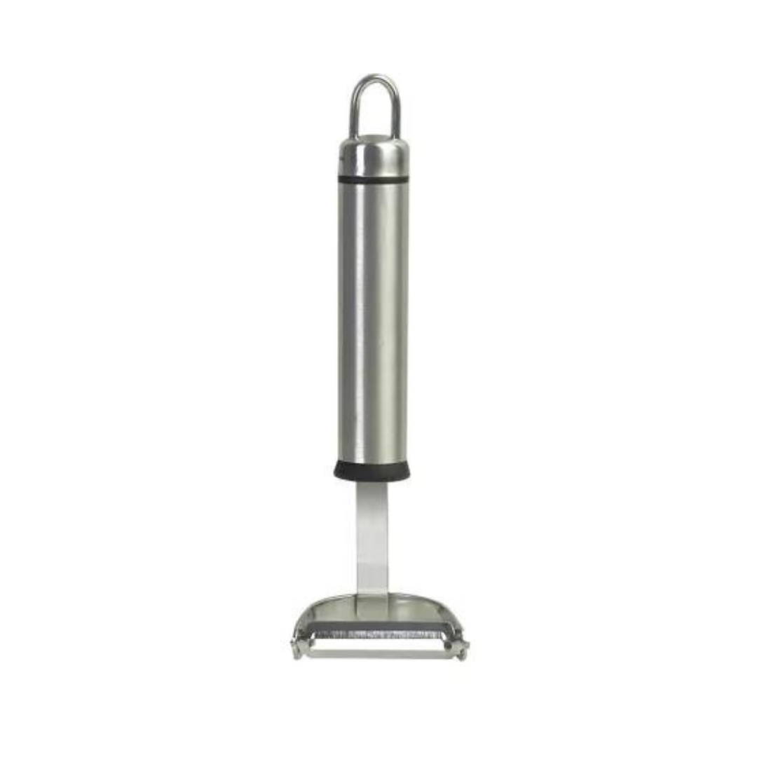 La cuchilla de este elemento es móvil, adaptándose a la forma de la papa o cualquier otro vegetal similar que se desee usar, para que sea mas fácil su manejo y se pele de una forma mas rápida y precisa.