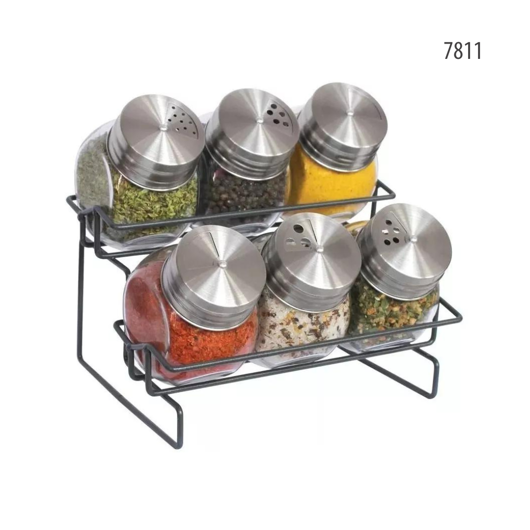 Rack Especiero De 6 Jarros Con Tapa De Acero Inoxidable (7811)