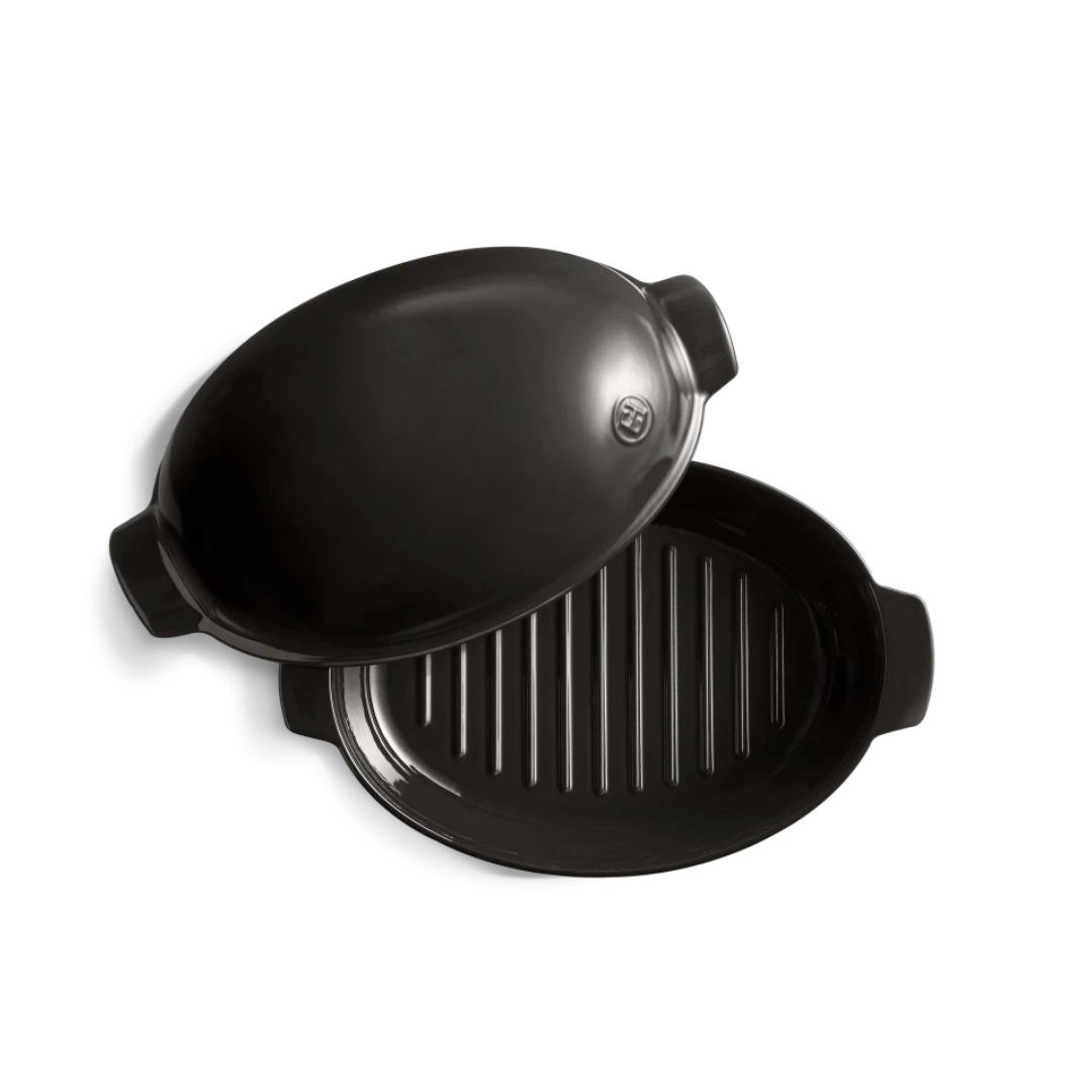 Ya sea un pavo, un pollo de corral o una pierna de cordero, la gran asadora de Emile Henry permite cocinar a la perfección aves de corral grandes y asar hasta 5 kg sin ensuciar el horno.