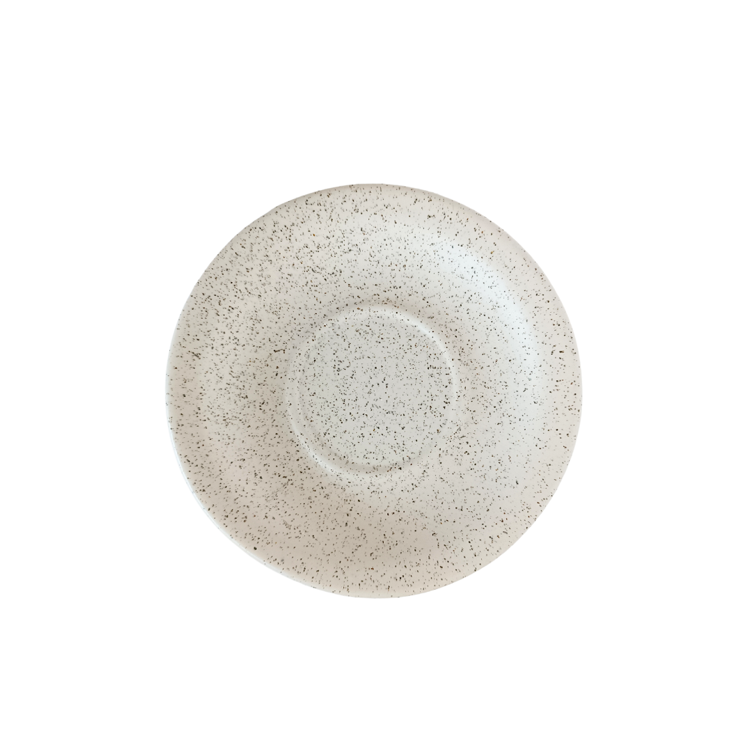 Taza + plato de cerámica Lupe color arena jaspeado