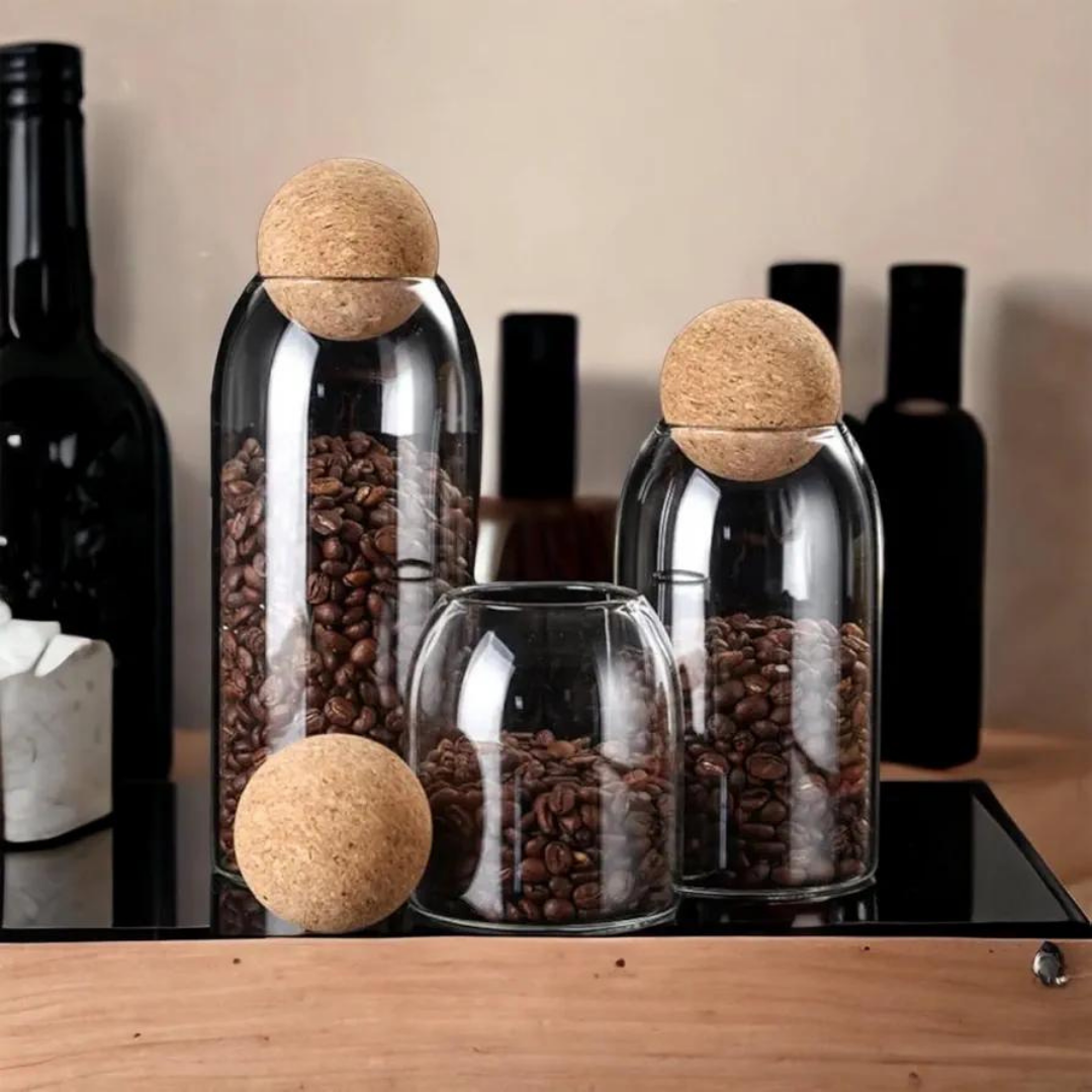 Frasco de vidrio con tapa con forma de espera de corcho